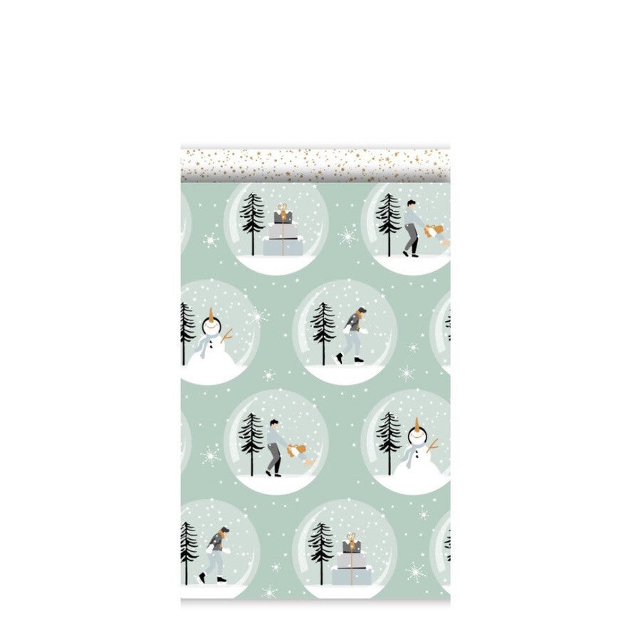 Het perfecte zakje voor kleine, winterse verrassingen! De zachte groentint en de vrolijke sneeuwbollen met gezellige wintertafereeltjes geven elk cadeautje een knusse, feestelijke uitstraling. Dankzij het fijne formaat is dit zakje ideaal voor kleine presentjes, traktaties of kerstbedankjes.